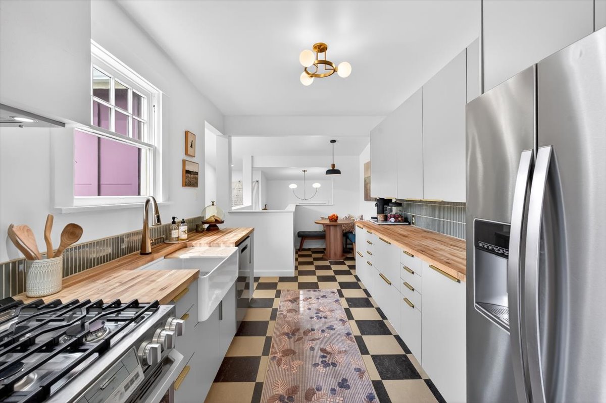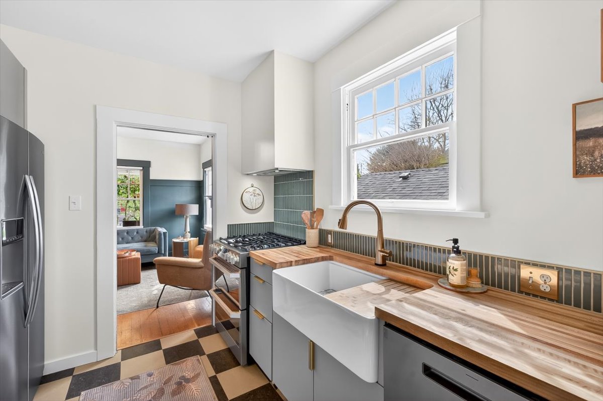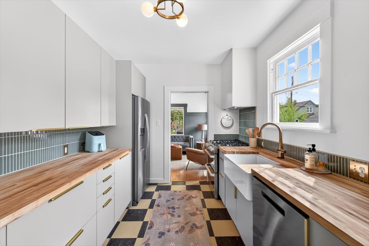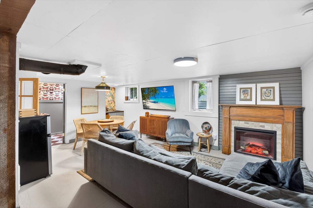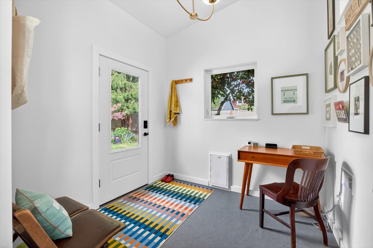 Hip Sellwood bungalow with thoughtful updates, flexible floorplan and unbeatable location! Nestled on a tree-lined street in one of Portland’s most beloved neighborhoods, this beautifully improved home blends classic character with major system upgrades. Relax on your huge front porch and enjoy peace of mind with the recent improvements which include a new roof, central A/C, new furnace, updated sewer line, radon mitigation system, new gutters, fresh interior paint, decommissioned oil tank AND a whole new addition to expand the kitchen and access to the basement- there are too many updates to list here, you MUST check out the updates list! The heart of the home is the stunning renovated kitchen and dining nook, taken down to the studs and rebuilt with new cabinetry, countertops, flooring, range, hood vent, dishwasher, backsplash, and beautiful fixtures. A new mudroom/office addition adds smart use of space. The finished basement apartment has an egress window and full bathroom. This space offers a bonus living room, guest room potential or even a primary suite option. The basement also has tons of flex space with Gym, workshop/craft, laundry area. Upstairs has a wide open bonus space with natural light and even more potential to make it a future primary suite. Located just blocks from Sellwood’s shops, cafes, parks, and restaurants, not to forget so close to the Willamette river with beaches, amusement parks, dog parks, boating and water activities. Walk Score of 89 and Bike Score of 98 make it easy to enjoy everything nearby.
