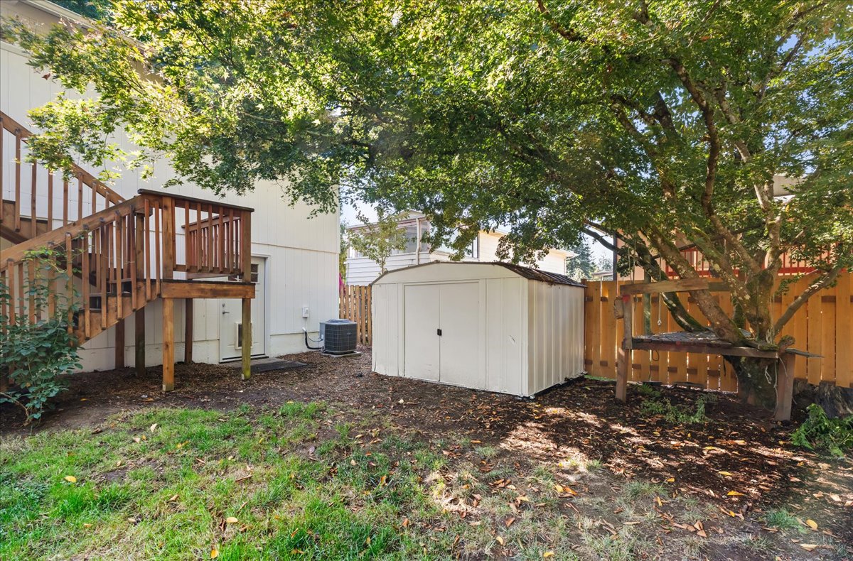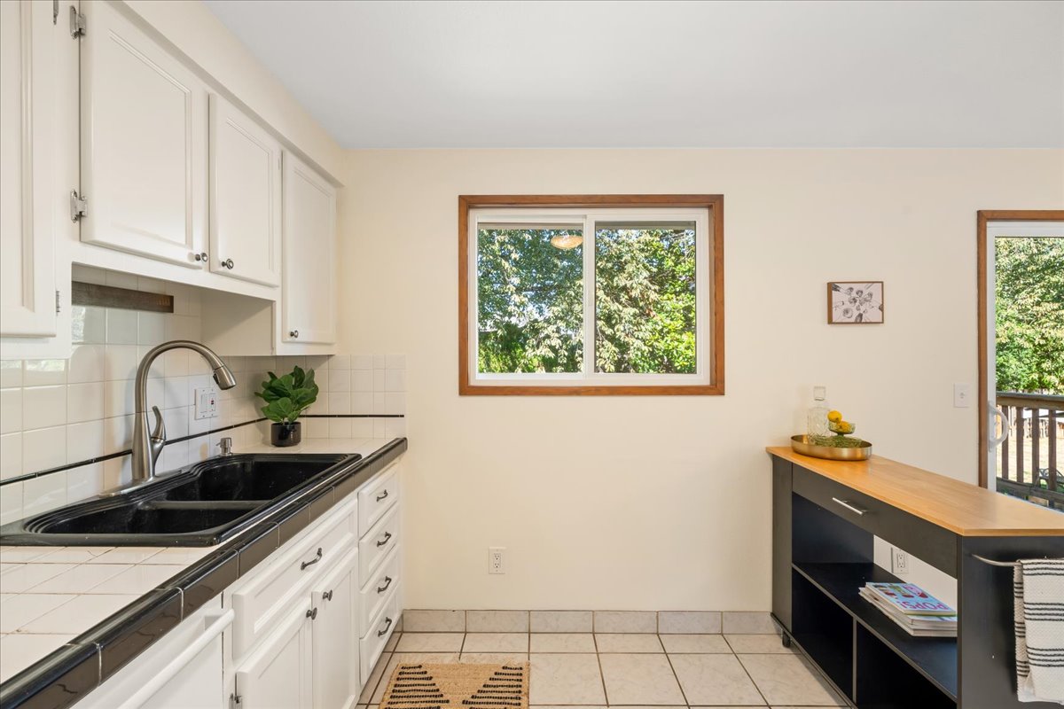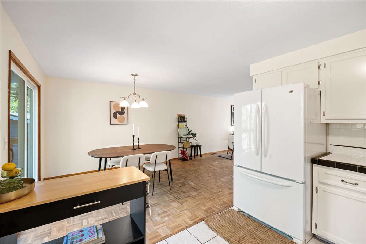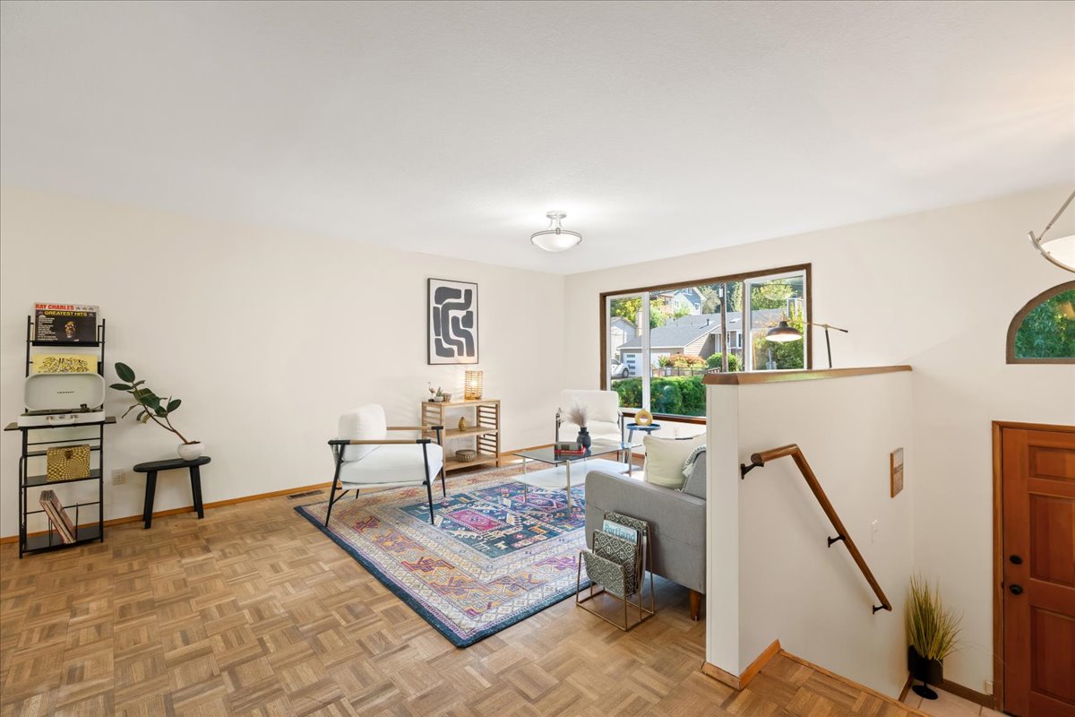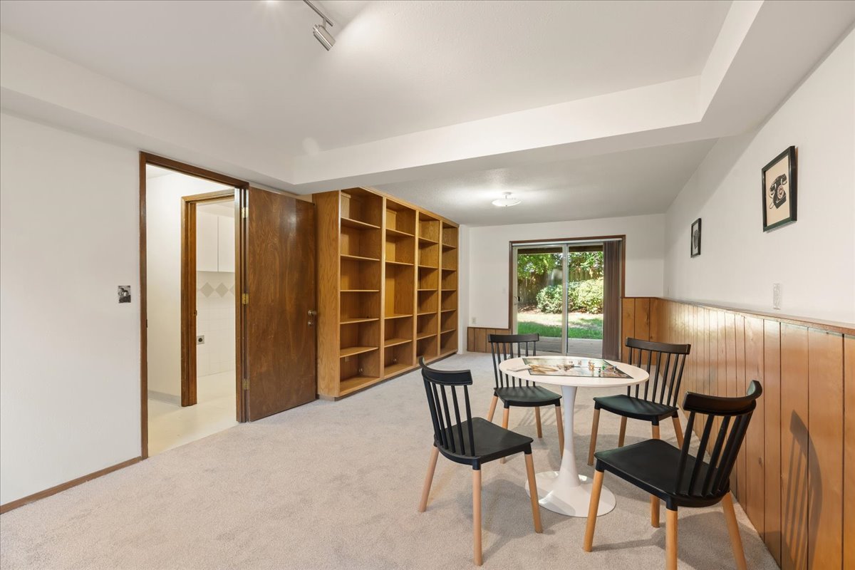 Located in the close-in Southwest neighborhood of West Portland Park, you’ll love being near local parks, shops, quick I-5 access, transit access and close to PCC Sylvania. Inside you are greeted with an open floor plan and parquet wood floors. Main living area has lots of natural light from the new front window. Also a large dining room with a slider to spacious deck and an open kitchen with gas cooking. The remodeled primary/hall bath features an updated vanity with extra built-in storage and a nice subway tiled tub-shower. Downstairs has a huge bonus room with built in shelving. A great flex space for a family room, game room, 4th bedroom, office, you name it! The many recent updates make this move-in-ready! Those updates include—newer HVAC with central air (2020), updated vinyl windows, fresh paint inside and out, new carpet, and new garage doors (2025), Roof (2017). Outside has a spacious deck overlooking the fenced yard with a storage shed and mature plantings. Talking about storage... check out the oversized garage with nearly four-car capacity! Stylish, comfortable, and conveniently located, this home is ready to welcome its next owner.