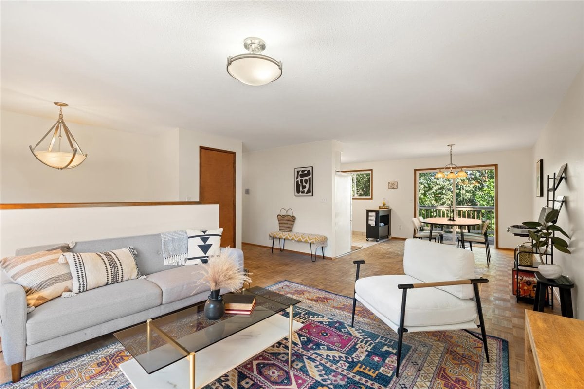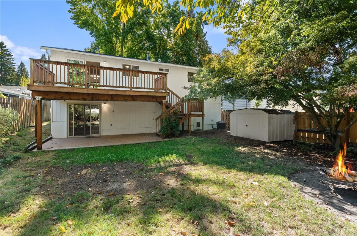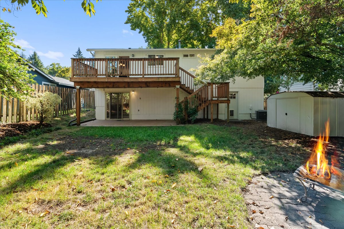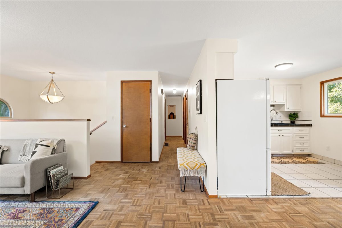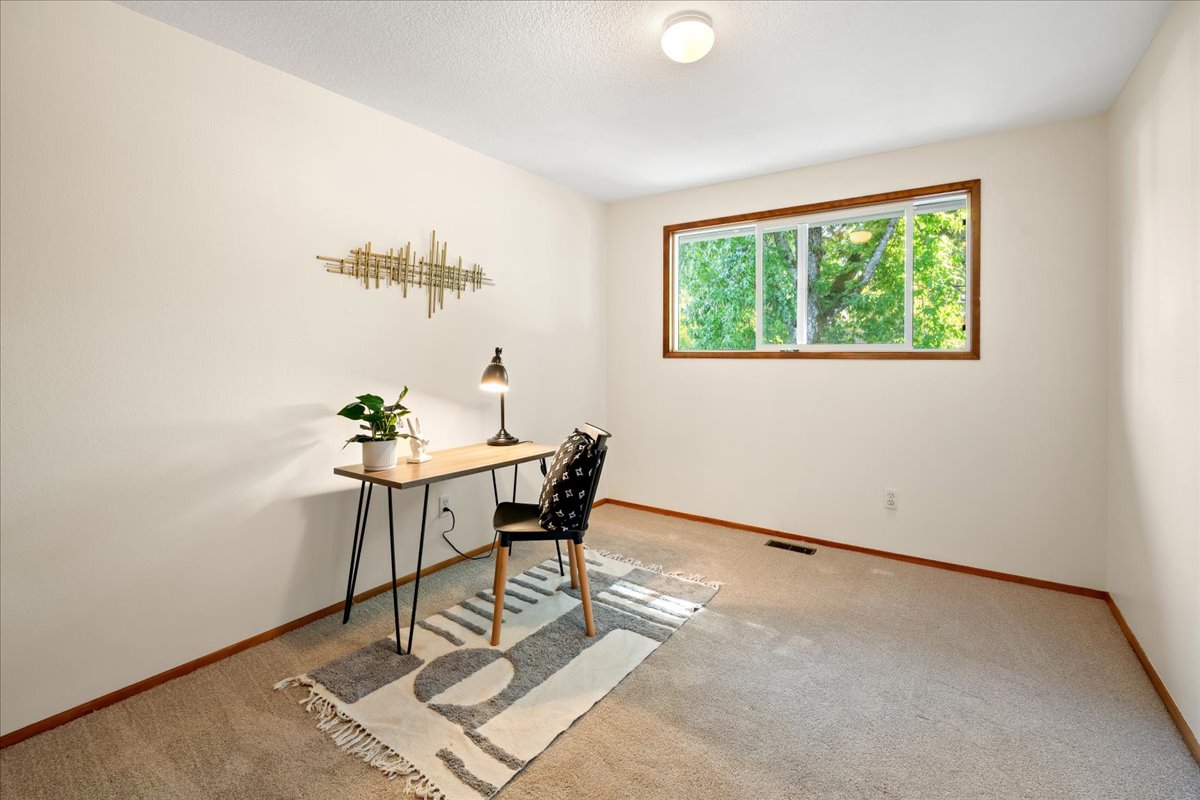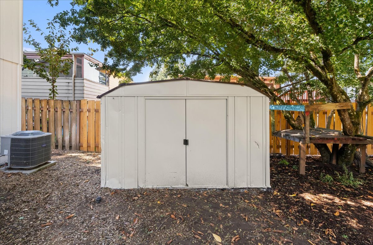 Located in the close-in Southwest neighborhood of West Portland Park, you’ll love being near local parks, shops, quick I-5 access, transit access and close to PCC Sylvania. Inside you are greeted with an open floor plan and parquet wood floors. Main living area has lots of natural light from the new front window. Also a large dining room with a slider to spacious deck and an open kitchen with gas cooking. The remodeled primary/hall bath features an updated vanity with extra built-in storage and a nice subway tiled tub-shower. Downstairs has a huge bonus room with built in shelving. A great flex space for a family room, game room, 4th bedroom, office, you name it! The many recent updates make this move-in-ready! Those updates include—newer HVAC with central air (2020), updated vinyl windows, fresh paint inside and out, new carpet, and new garage doors (2025), Roof (2017). Outside has a spacious deck overlooking the fenced yard with a storage shed and mature plantings. Talking about storage... check out the oversized garage with nearly four-car capacity! Stylish, comfortable, and conveniently located, this home is ready to welcome its next owner.
