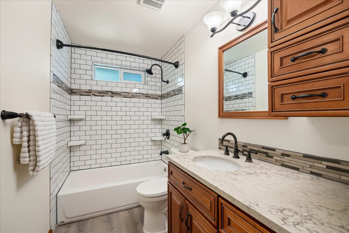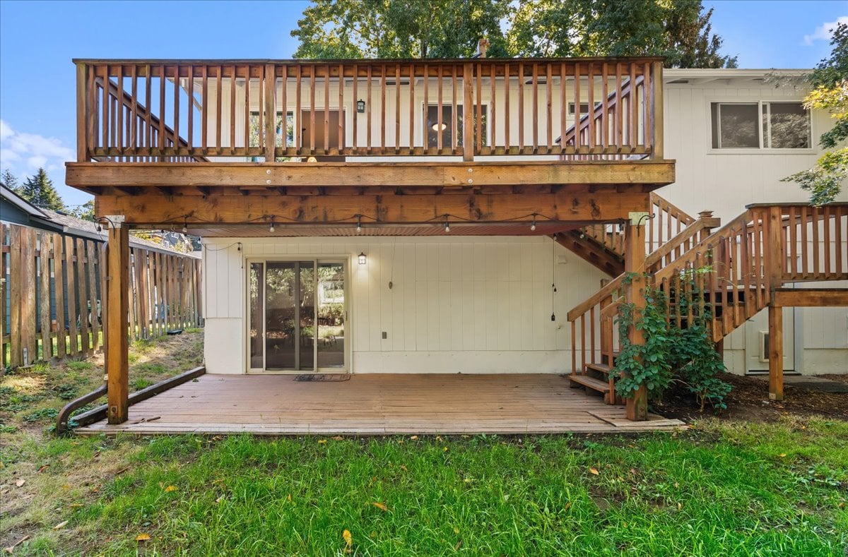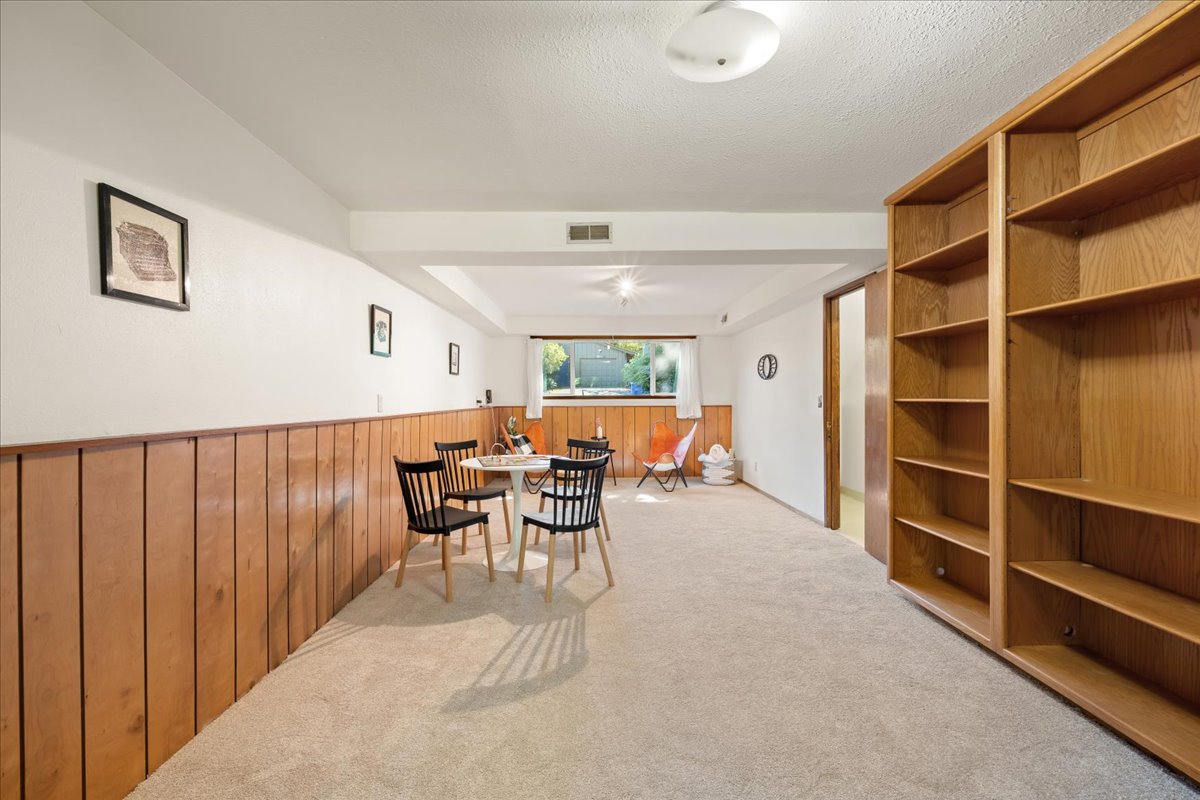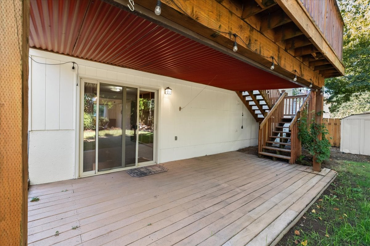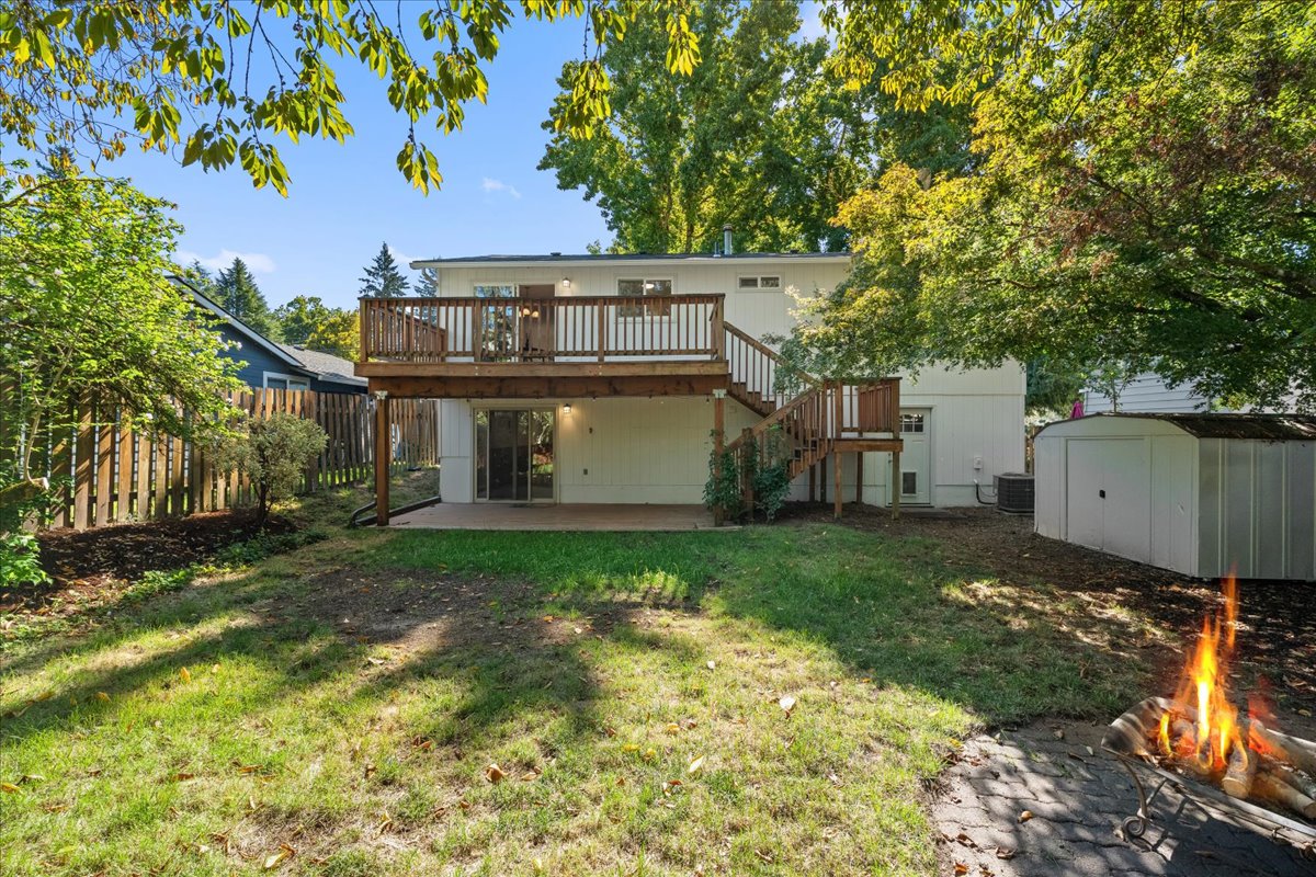 Located in the close-in Southwest neighborhood of West Portland Park, you’ll love being near local parks, shops, quick I-5 access, transit access and close to PCC Sylvania. Inside you are greeted with an open floor plan and parquet wood floors. Main living area has lots of natural light from the new front window. Also a large dining room with a slider to spacious deck and an open kitchen with gas cooking. The remodeled primary/hall bath features an updated vanity with extra built-in storage and a nice subway tiled tub-shower. Downstairs has a huge bonus room with built in shelving. A great flex space for a family room, game room, 4th bedroom, office, you name it! The many recent updates make this move-in-ready! Those updates include—newer HVAC with central air (2020), updated vinyl windows, fresh paint inside and out, new carpet, and new garage doors (2025), Roof (2017). Outside has a spacious deck overlooking the fenced yard with a storage shed and mature plantings. Talking about storage... check out the oversized garage with nearly four-car capacity! Stylish, comfortable, and conveniently located, this home is ready to welcome its next owner.