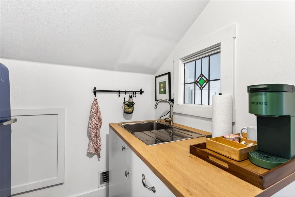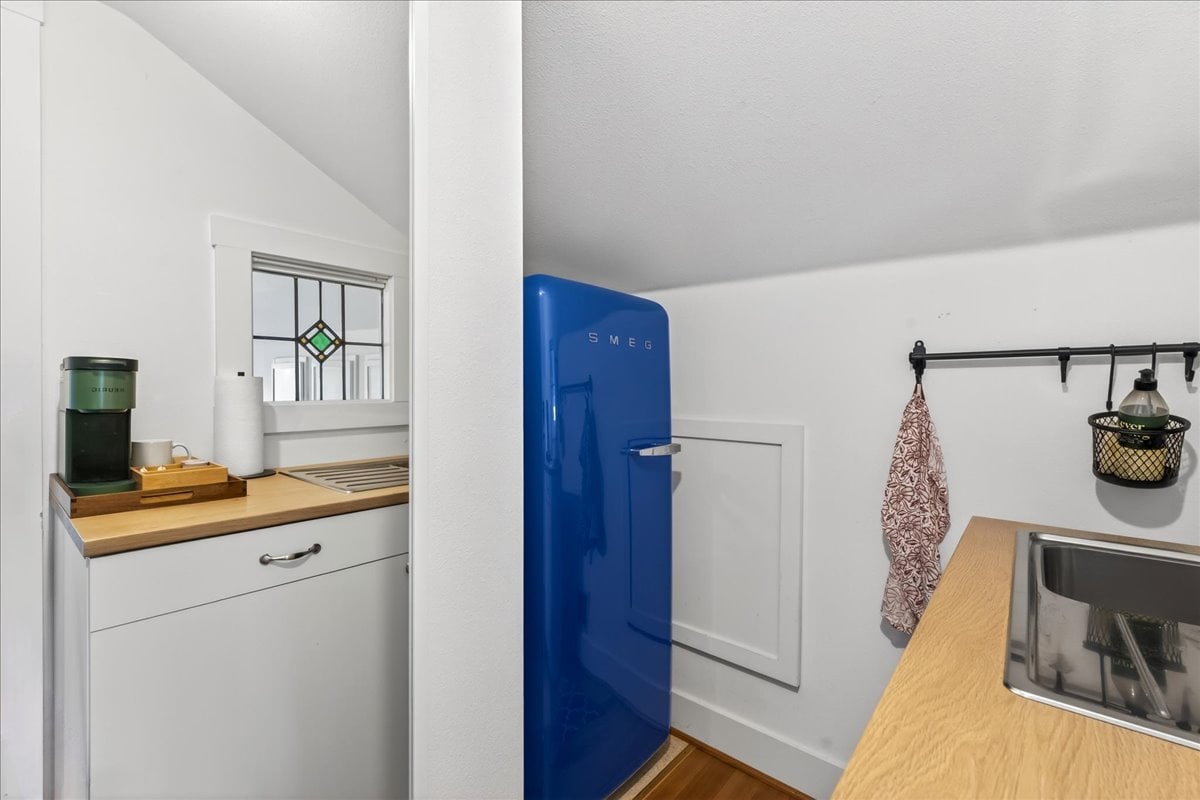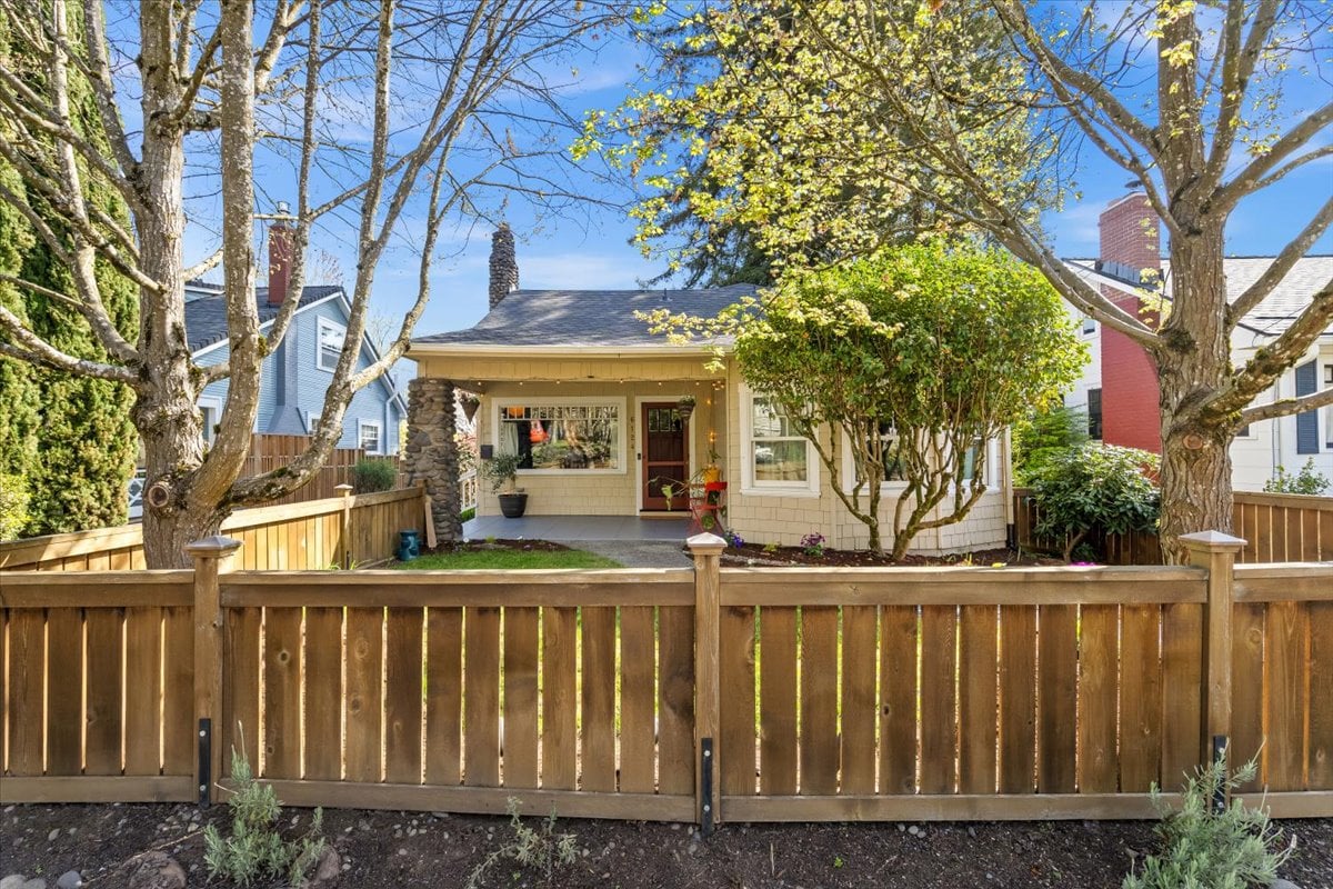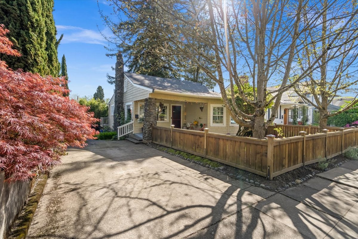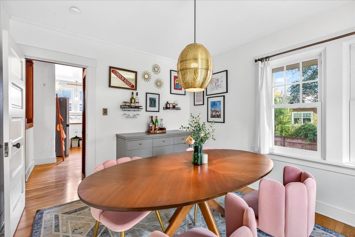Classic charm meets vibrant living in this Westmoreland bungalow full of personality. From the moment you arrive, the covered front porch and fresh landscaping set the tone for what’s inside which is timeless character paired with thoughtful updates like new A/C and earthquake retrofitting. Step inside to find hardwood floors, original details like the gorgeous woodwork, and a cozy wood-burning cobblestone fireplace that anchors the living space. The vintage farmhouse kitchen sink adds a touch of nostalgia, while the separate dining room creates the perfect setting for intimate conversations or a quiet work space. Pops of wallpaper make the rooms fun and inviting. Upstairs offers incredible versatility with its own separate entry and views of Mt. Tabor on clear days from the charming office/dining nook. Currently operating as a fully set up Airbnb, this level could easily function as a private primary suite retreat, complete with bedroom, spacious bathroom, and additional living space. The basement provides abundant storage along with bonus areas ready to adapt to your needs—whether that’s a creative studio, playroom, or additional living space.