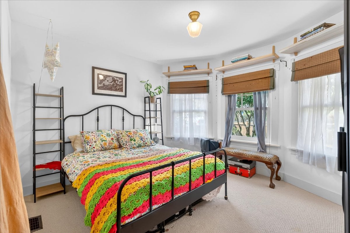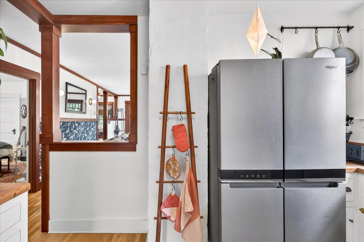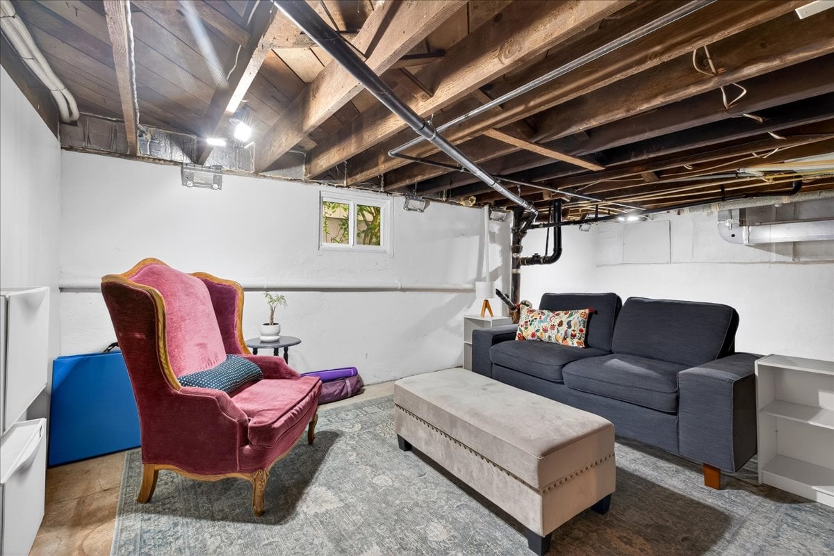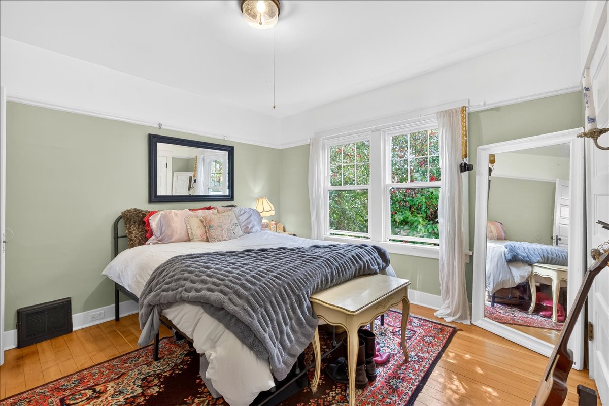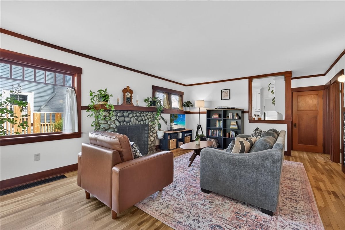 Classic charm meets vibrant living in this Westmoreland bungalow full of personality. From the moment you arrive, the covered front porch and fresh landscaping set the tone for what’s inside which is timeless character paired with thoughtful updates like new A/C and earthquake retrofitting. Step inside to find hardwood floors, original details like the gorgeous woodwork, and a cozy wood-burning cobblestone fireplace that anchors the living space. The vintage farmhouse kitchen sink adds a touch of nostalgia, while the separate dining room creates the perfect setting for intimate conversations or a quiet work space. Pops of wallpaper make the rooms fun and inviting. Upstairs offers incredible versatility with its own separate entry and views of Mt. Tabor on clear days from the charming office/dining nook. Currently operating as a fully set up Airbnb, this level could easily function as a private primary suite retreat, complete with bedroom, spacious bathroom, and additional living space. The basement provides abundant storage along with bonus areas ready to adapt to your needs—whether that’s a creative studio, playroom, or additional living space.
