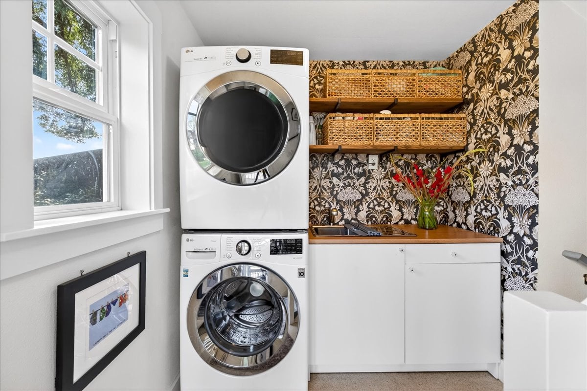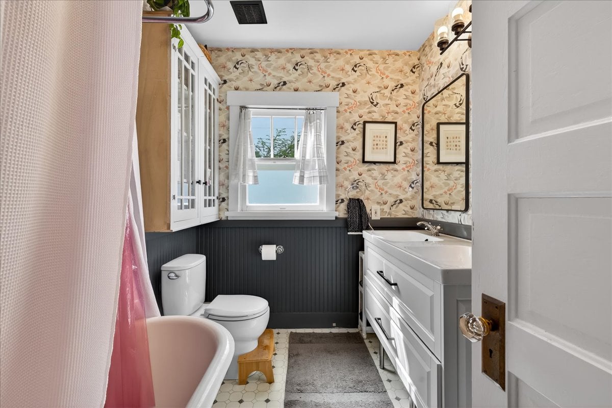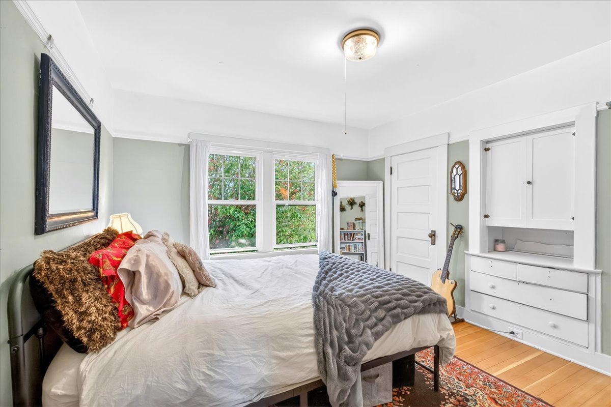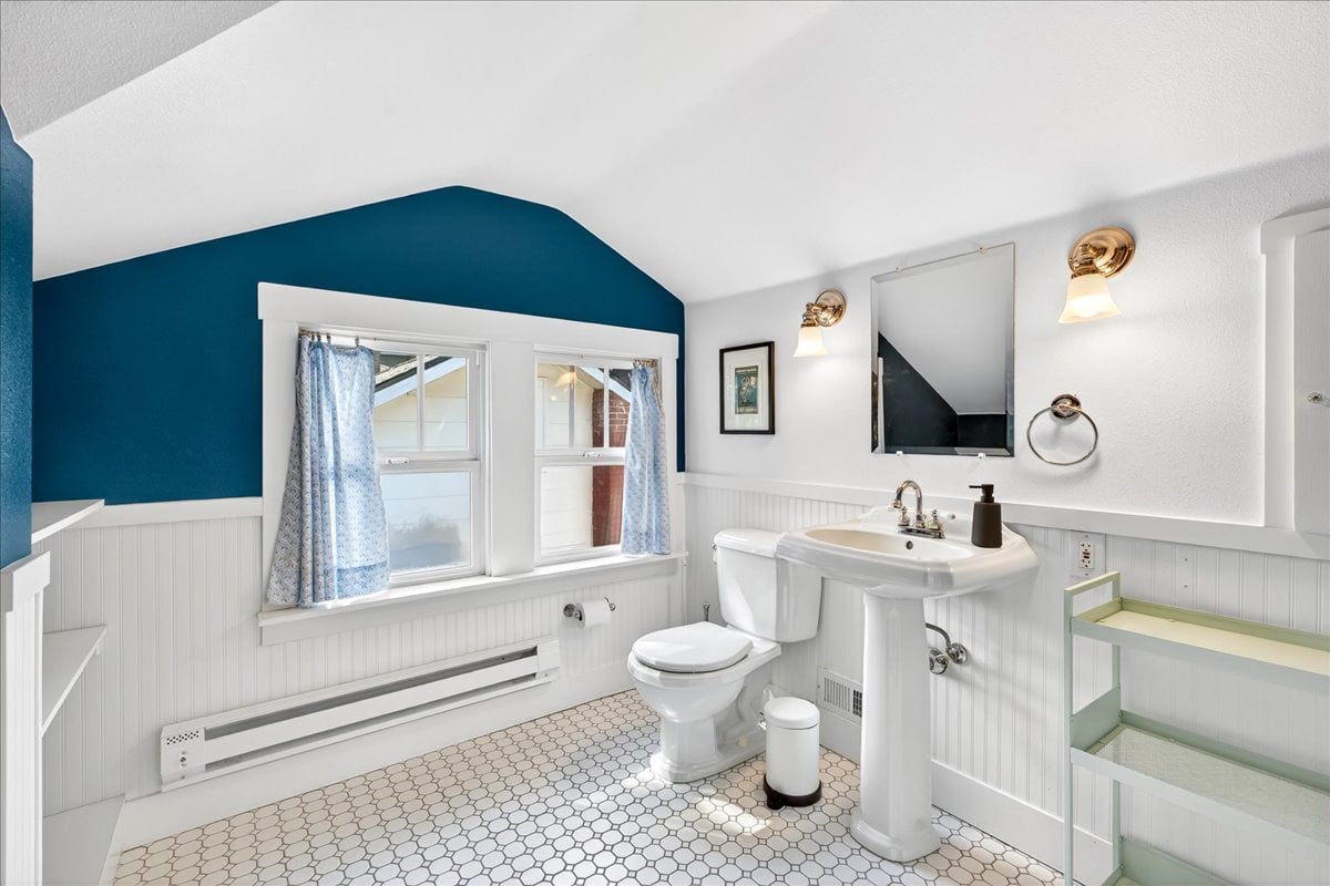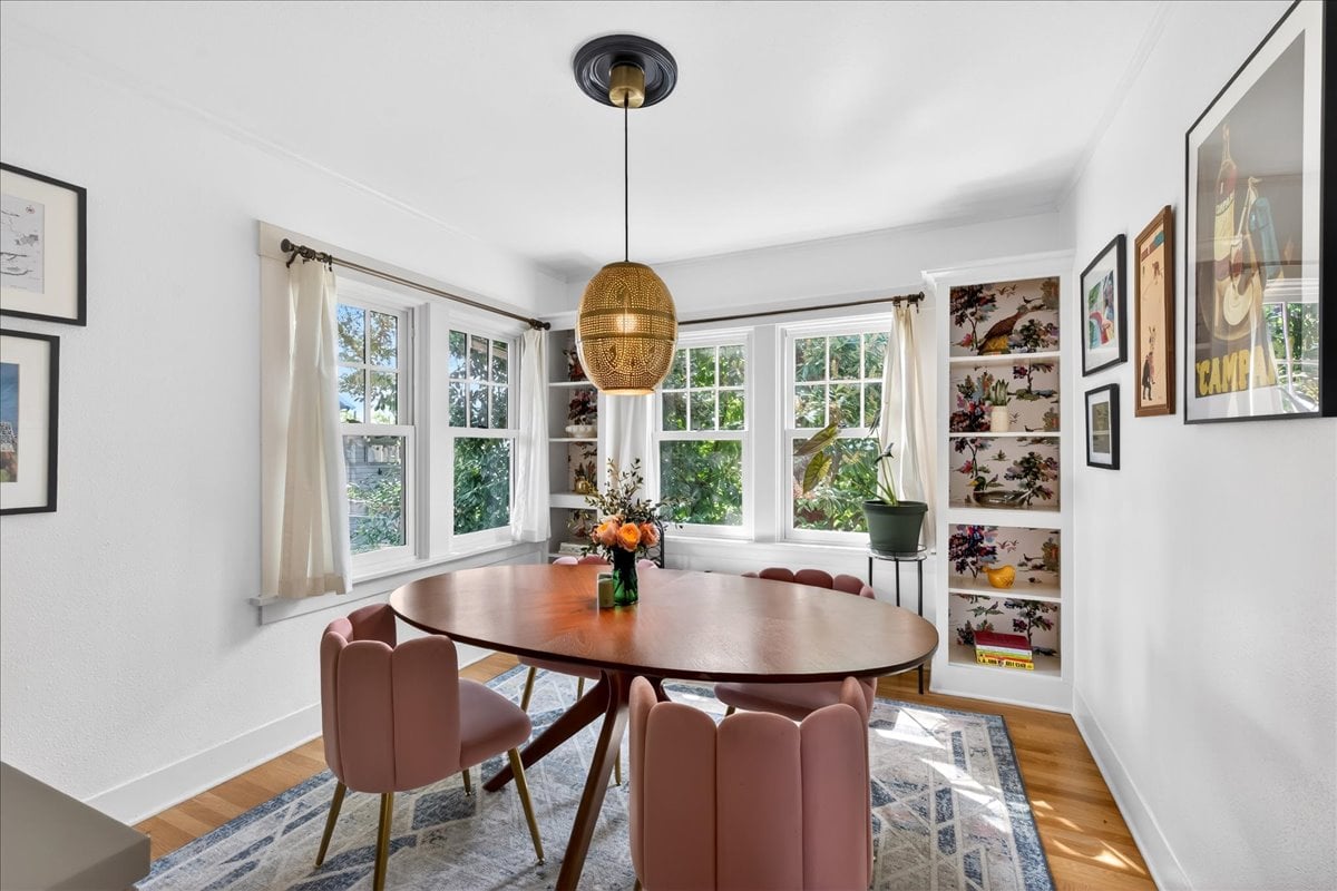 Classic charm meets vibrant living in this Westmoreland bungalow full of personality. From the moment you arrive, the covered front porch and fresh landscaping set the tone for what’s inside which is timeless character paired with thoughtful updates like new A/C and earthquake retrofitting. Step inside to find hardwood floors, original details like the gorgeous woodwork, and a cozy wood-burning cobblestone fireplace that anchors the living space. The vintage farmhouse kitchen sink adds a touch of nostalgia, while the separate dining room creates the perfect setting for intimate conversations or a quiet work space. Pops of wallpaper make the rooms fun and inviting. Upstairs offers incredible versatility with its own separate entry and views of Mt. Tabor on clear days from the charming office/dining nook. Currently operating as a fully set up Airbnb, this level could easily function as a private primary suite retreat, complete with bedroom, spacious bathroom, and additional living space. The basement provides abundant storage along with bonus areas ready to adapt to your needs—whether that’s a creative studio, playroom, or additional living space.